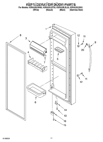 Parts for Kitchenaid KSRA22ILBT03: 07 - Refrigerator Door Parts