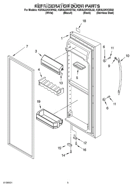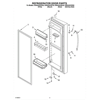 Parts for Kitchenaid KSRA22KKBT02: 04 - Refrigerator Door Parts