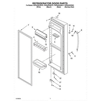 The Refrigerator Door Gasket (BLK) is an OEM part for Whirlpool refrigerators. This black gasket is designed to create a tight seal around the refrigerator door, preventing warm air from entering and cool air from escaping. The gasket is black in color and measures approximately 19 ¼” wide by 62" tall.