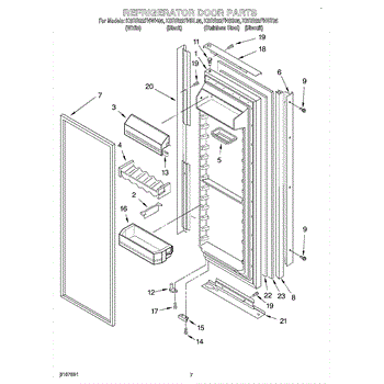 Parts for Kitchenaid KSRB22FHWH05: 05 - Refrigerator Door Parts
