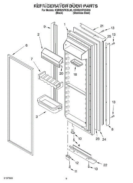 The Refrigerator Door Gasket (BLK) is an OEM part for Whirlpool refrigerators. This black gasket is designed to create a tight seal around the refrigerator door, preventing warm air from entering and cool air from escaping. The gasket is black in color and measures approximately 19 ¼” wide by 62" tall.