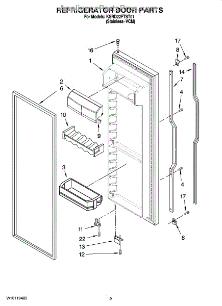 Parts for Kitchenaid KSRD22FTST01: 06 - Refrigerator Door Parts
