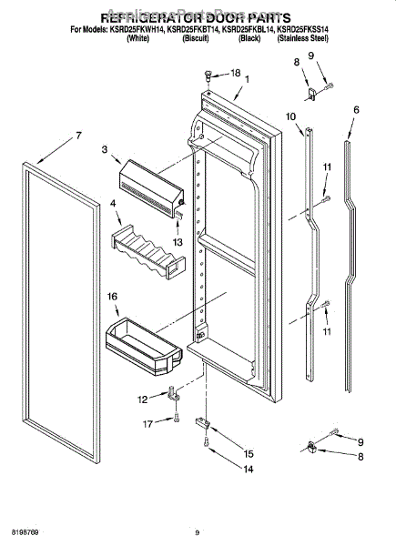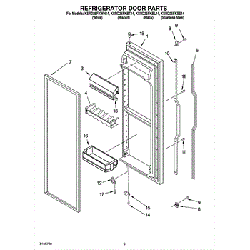 Parts for Kitchenaid KSRD25FKWH14: 06 - Refrigerator Door Parts