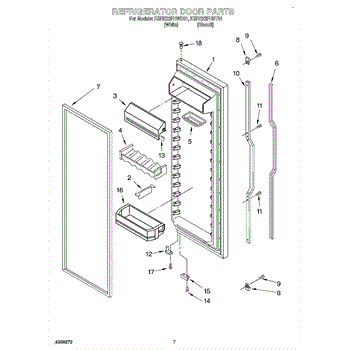 Parts for Kitchenaid KSRE22FHWH01: 05 - Refrigerator Door Parts