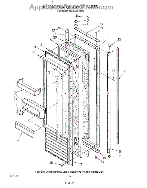 This screw is used to secure the handle end cap to the center of the door. The screw size measures 8-18 x 1/2 inches.