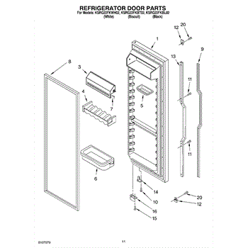 Parts for Kitchenaid KSRG22FKWH02: 07 - Refrigerator Door Parts