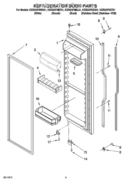 Parts for Kitchenaid KSRI25FNSS01: 06 - Refrigerator Door Parts