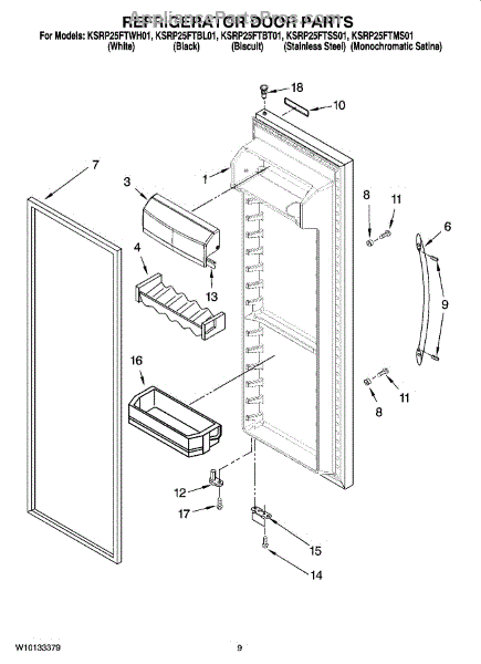 Parts for Kitchenaid KSRP25FTBL01: 06 - Refrigerator Door Parts