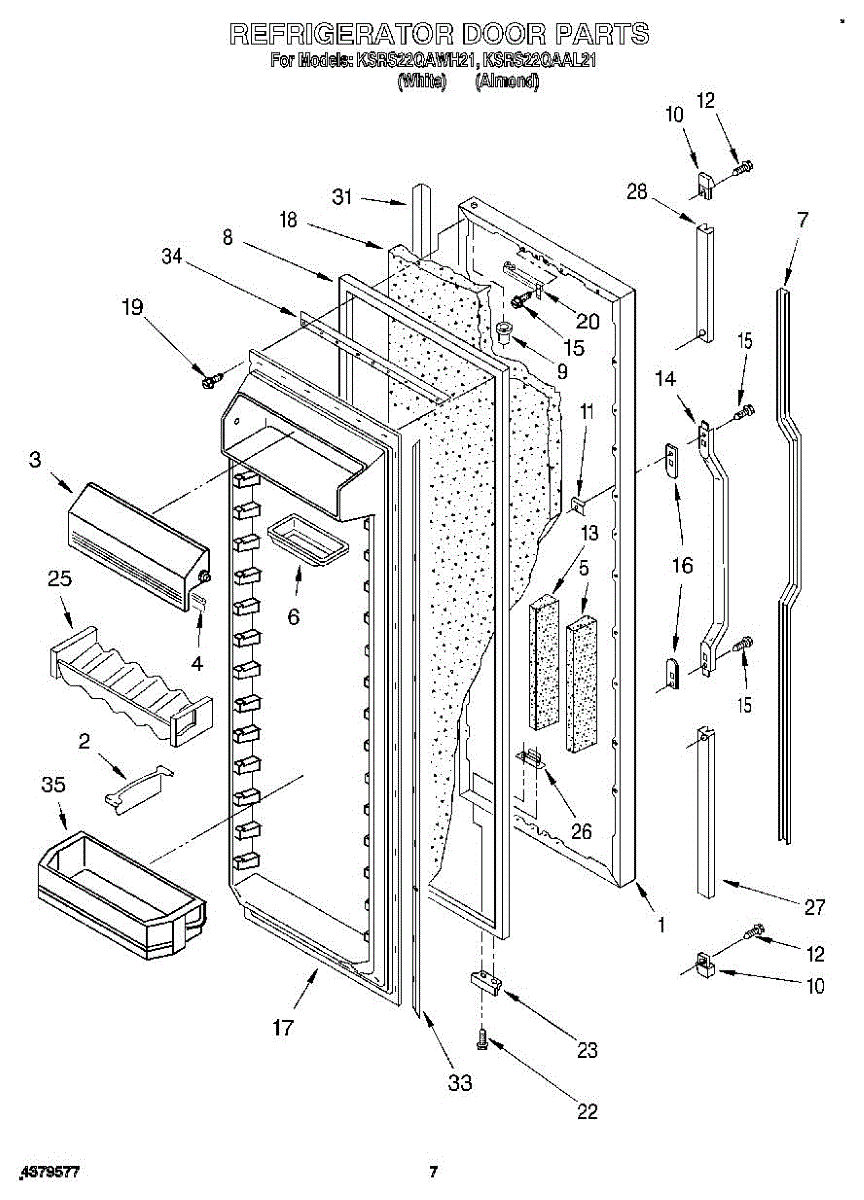 The Refrigerator Door Gasket is an OEM part for Whirlpool refrigerators. This gasket forms a seal around the refrigerator door, ensuring that cold air stays inside and warm air remains outside, maintaining the appliance's efficiency and keeping food fresh.