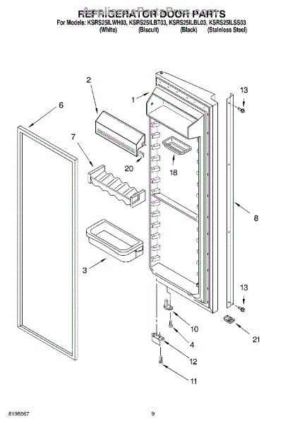 Parts for Kitchenaid KSRS25ILBT03: 06 - Refrigerator Door Parts