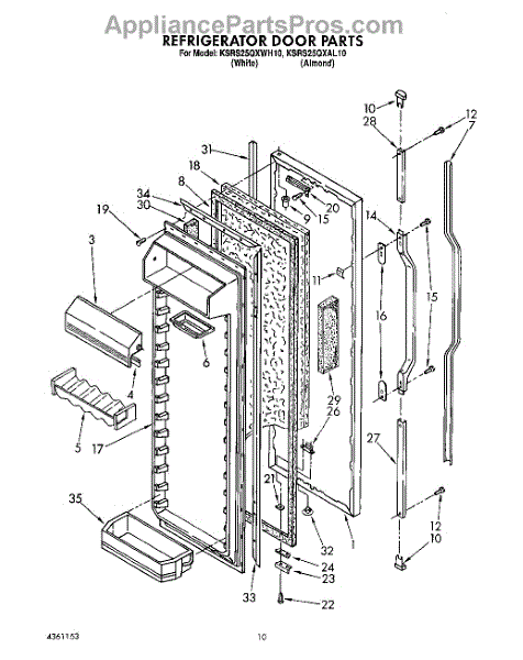 Parts for Kitchenaid KSRS25QXWH10: 07 - Refrigerator Door Parts
