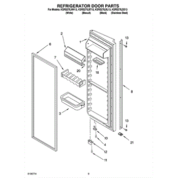 Parts for Kitchenaid KSRS27ILBT13: 06 - Refrigerator Door Parts