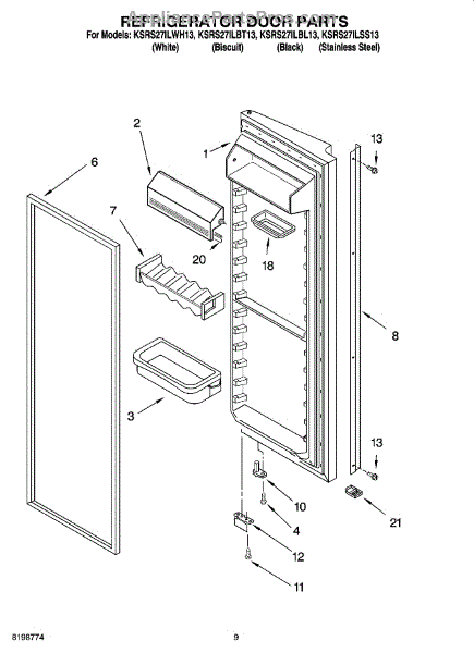 Parts for Kitchenaid KSRS27ILSS13: 06 - Refrigerator Door Parts
