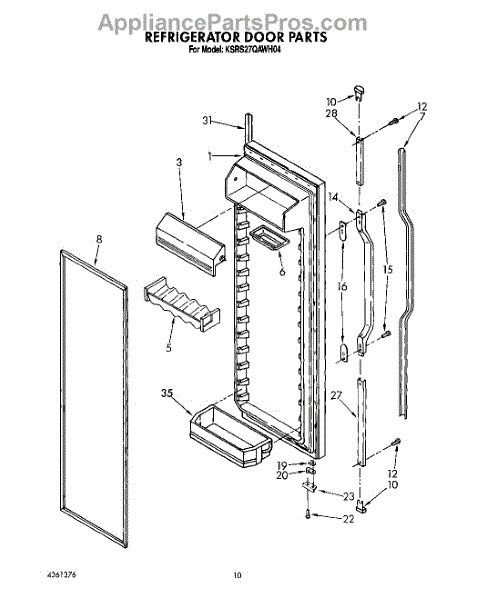 Parts for Kitchenaid KSRS27QAWH04: 07 - Refrigerator Door Parts