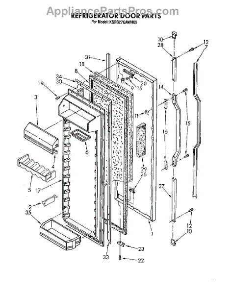 This screw is used to secure the handle end cap to the center of the door. The screw size measures 8-18 x 1/2 inches.