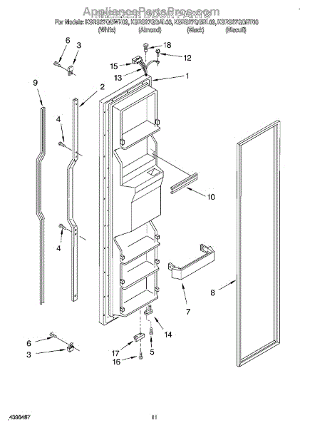 The Freezer Door Gasket is an OEM replacement part for Whirlpool refrigerators. It creates a tight insulating seal around the perimeter of the freezer door opening. The gasket helps maintain consistent sub-freezing temperatures inside by preventing cold air loss. Causes relate to natural compression fatigue over time, cracks developing with use, or accidental slicing/tears from sharp edges within the freezer. Symptoms of a compromised gasket include: