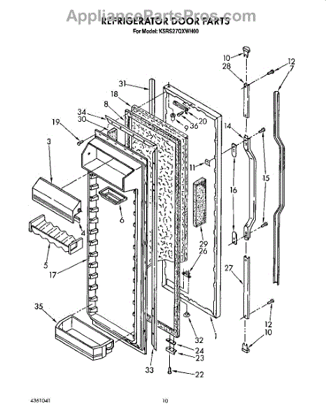 This screw is used to secure the handle end cap to the center of the door. The screw size measures 8-18 x 1/2 inches.