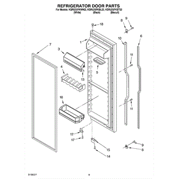 Parts for Kitchenaid KSRU25FKBT02: 06 - Refrigerator Door Parts