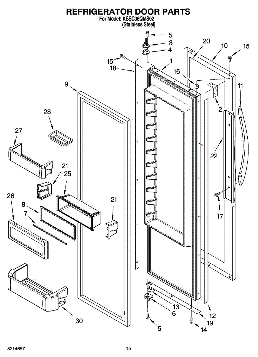Parts for Kitchenaid KSSC36QMS02: 10 - Refrigerator Door Parts