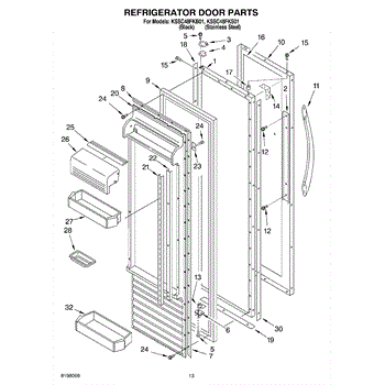 Parts for Kitchenaid KSSC48FKS01: 09 - Refrigerator Door Parts