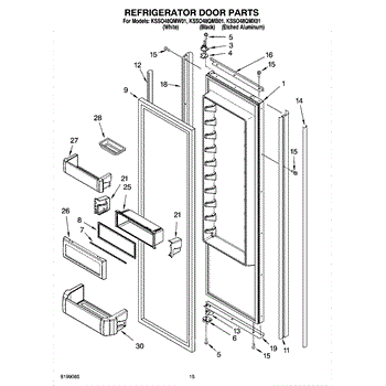 Parts for Kitchenaid KSSO48QMW01: 10 - Refrigerator Door Parts