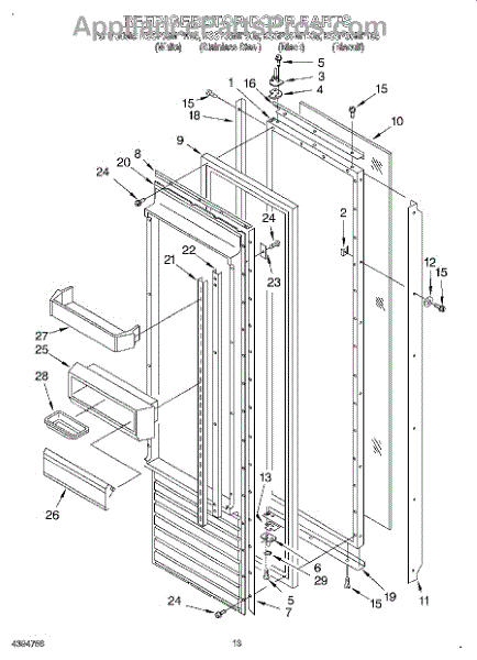 This screw is used to secure the handle end cap to the center of the door. The screw size measures 8-18 x 1/2 inches.
