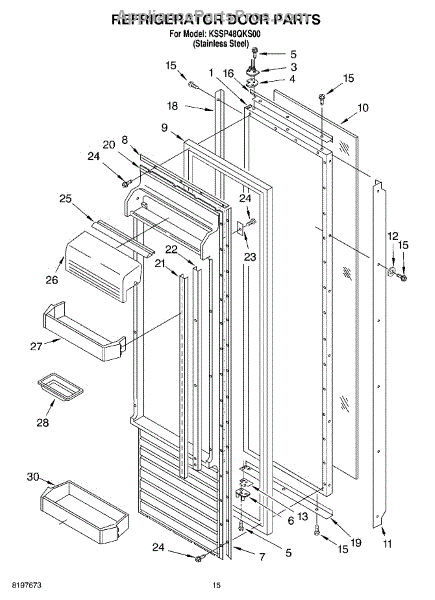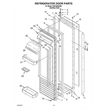 This screw is used to secure the handle end cap to the center of the door. The screw size measures 8-18 x 1/2 inches.