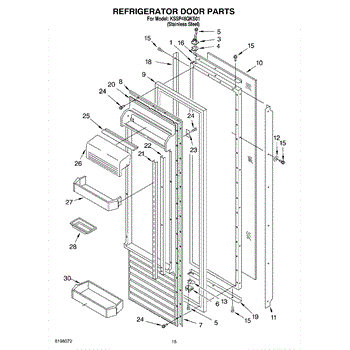 This screw is used to secure the handle end cap to the center of the door. The screw size measures 8-18 x 1/2 inches.