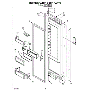 The Dairy Bin is an OEM replacement part for Whirlpool's built-in and integrated refrigerator side-by-side door shelves. It provides a designated space optimized for storing dairy products.