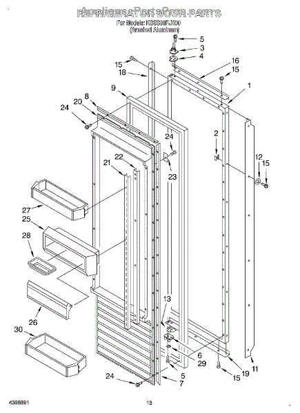 This screw is used to secure the handle end cap to the center of the door. The screw size measures 8-18 x 1/2 inches.