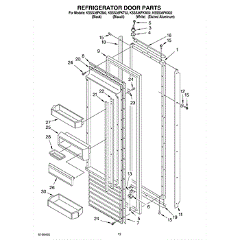 This screw is used to secure the handle end cap to the center of the door. The screw size measures 8-18 x 1/2 inches.