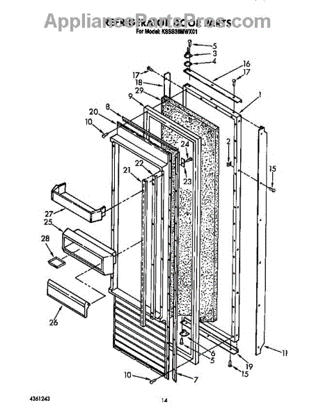 Parts for Kitchenaid KSSS36MWX01: Refrigerator Door Parts