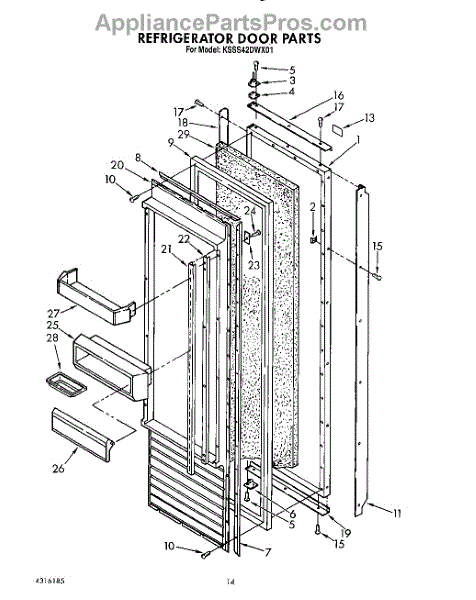 Parts for Kitchenaid KSSS42DWX01: 11 - Refrigerator Door Parts