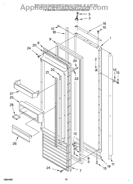 This screw is used to secure the handle end cap to the center of the door. The screw size measures 8-18 x 1/2 inches.