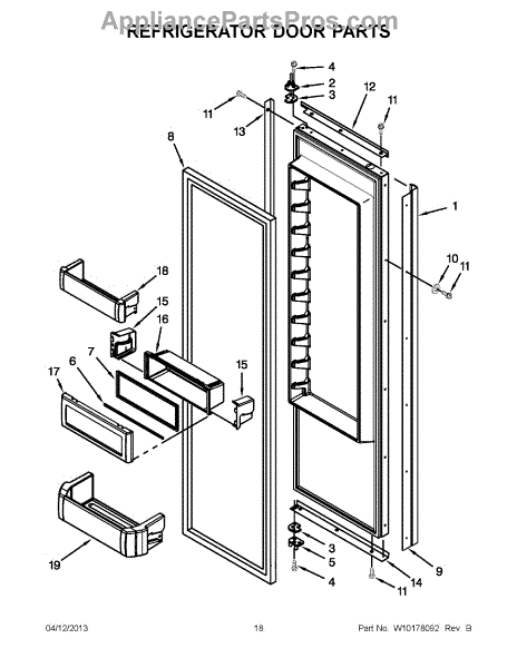 The Bin Shelf is an OEM component specifically designed for Whirlpool bottom-mount refrigerators. It provides a convenient storage solution located inside the refrigerator door. The adjustable bin shelf can accommodate gallon-sized beverage containers as well as smaller items like condiments and sauces.