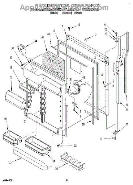 This screw is used to secure the handle end cap to the center of the door. The screw size measures 8-18 x 1/2 inches.