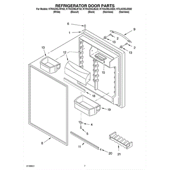 Parts for Kitchenaid KTRA22ELBT02: 04 - Refrigerator Door Parts