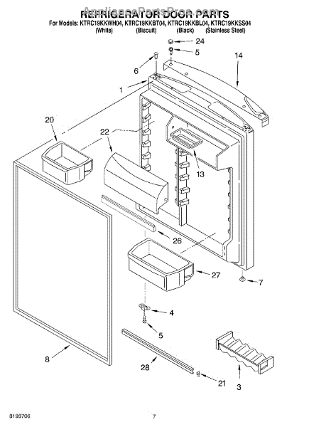 Parts for Kitchenaid KTRC19KKBT04: 04 - Refrigerator Door Parts