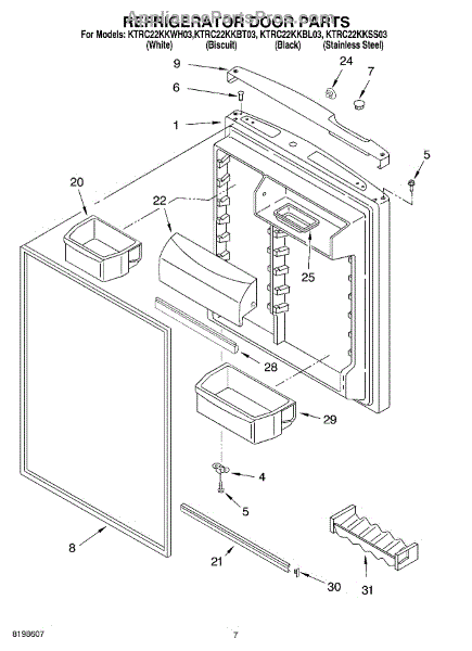 Parts for Kitchenaid KTRC22KKBL03: 04 - Refrigerator Door Parts