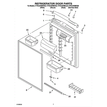 Parts for Kitchenaid KTRC22KMBL00: 04 - Refrigerator Door Parts
