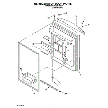 The Door Bin is an OEM replacement part for Whirlpool refrigerators. It is a removable plastic storage bin mounted inside the upper refrigerator door. This bin provides convenient access for eggs, condiments, and other small items with the door open.