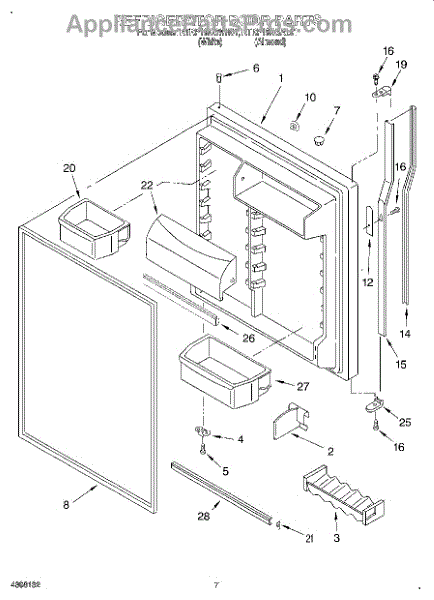 Parts for Kitchenaid KTRP19KGWH01: 04 - Refrigerator Door Parts