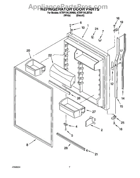 Causes of a bad fresh food door gasket include cracks, tears, or compressed sections that no longer form an airtight seal. Prolonged use of 10+ years can cause rubber to break down. Entering/closing the door carelessly could damage the gasket over time as well.
