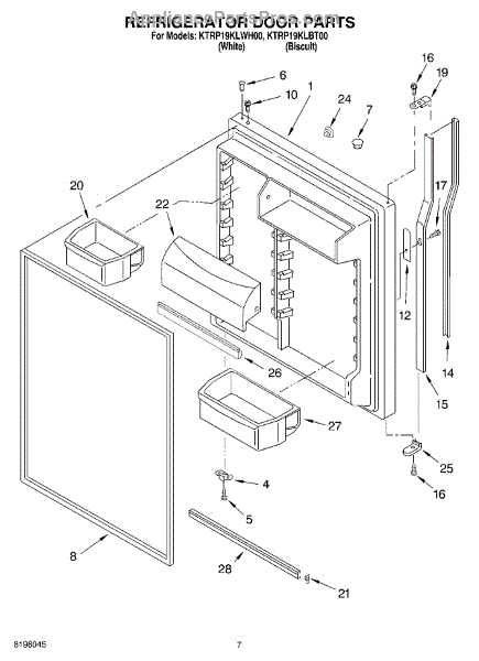 Parts for Kitchenaid KTRP19KLWH00: 04 - Refrigerator Door Parts