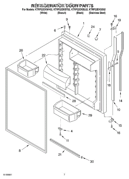 Parts for Kitchenaid KTRP22EKWH02: 04 - Refrigerator Door Parts
