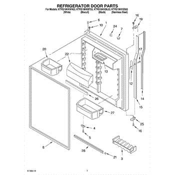 Parts for Kitchenaid KTRS19KKBT03: 04 - Refrigerator Door Parts