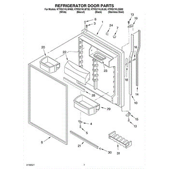 Parts for Kitchenaid KTRS21KLSS00: 04 - Refrigerator Door Parts