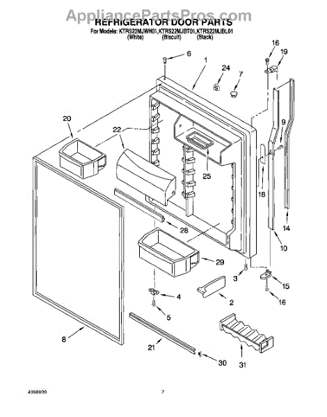 Parts for Kitchenaid KTRS22MJWH01: 04 - Refrigerator Door Parts