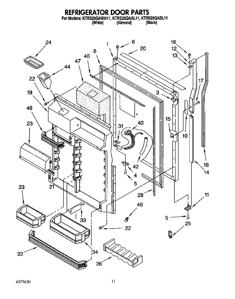 This screw is used to secure the handle end cap to the center of the door. The screw size measures 8-18 x 1/2 inches.