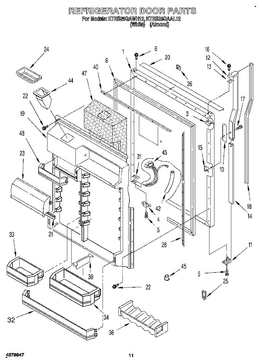 This screw is used to secure the handle end cap to the center of the door. The screw size measures 8-18 x 1/2 inches.